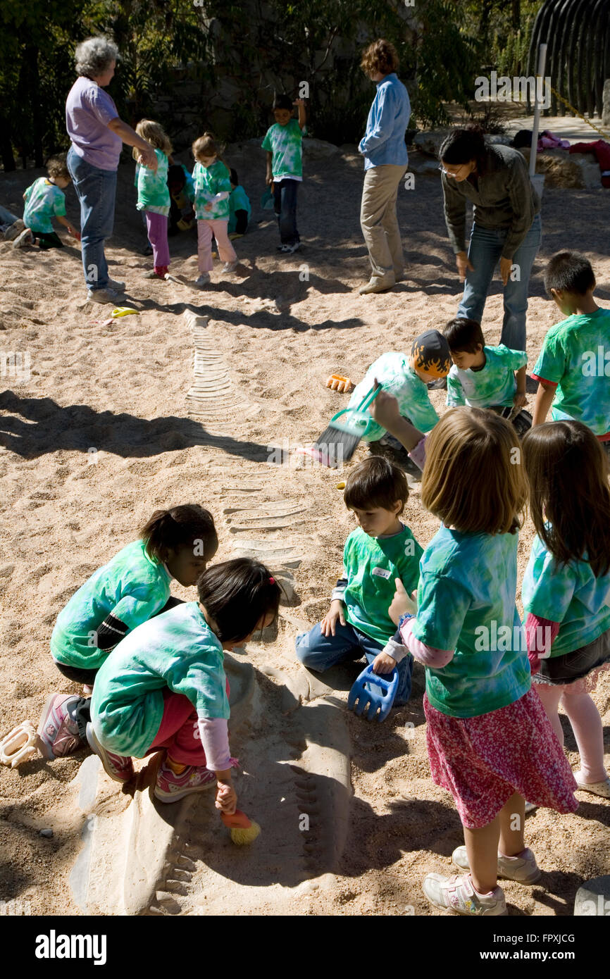 Youngsters Unearth A Dinosaur Skeleton At Zilker Park S Dino Pit Hands On Paleontology Exhibit Austin Nature Science Center Stock Photo Alamy